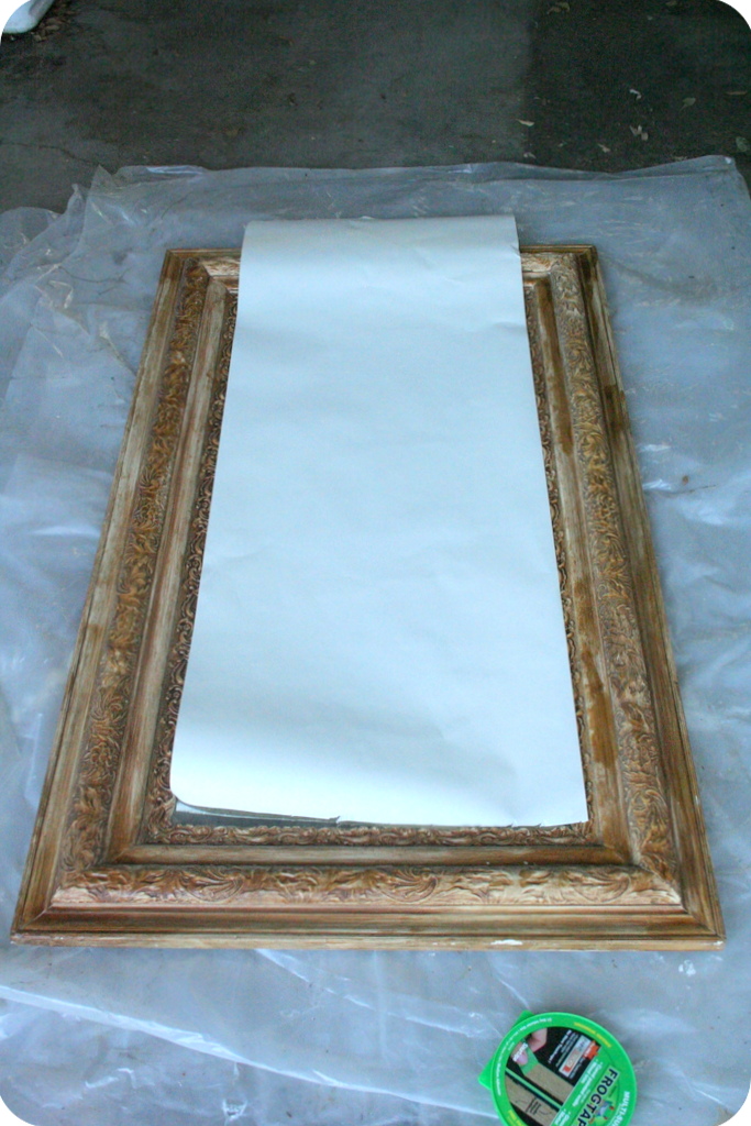 I laid my mirror on a plastic drop cloth in my garage and covered the glass with paper.