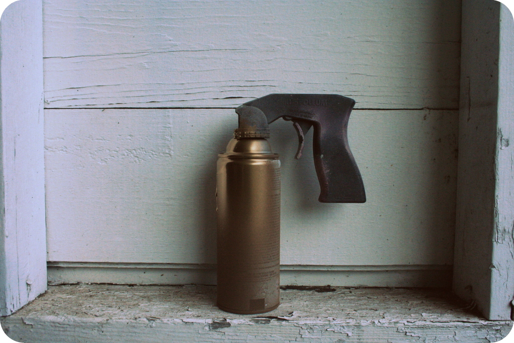 And here is my weapon of choice. Seriously, this little spray paint gun is a life saver. It will save you from permanent spray-paint-can-trigger-impression-finger and just makes the entire process more fun. Life. Saver. You can find this little guy at practically any hardware store.