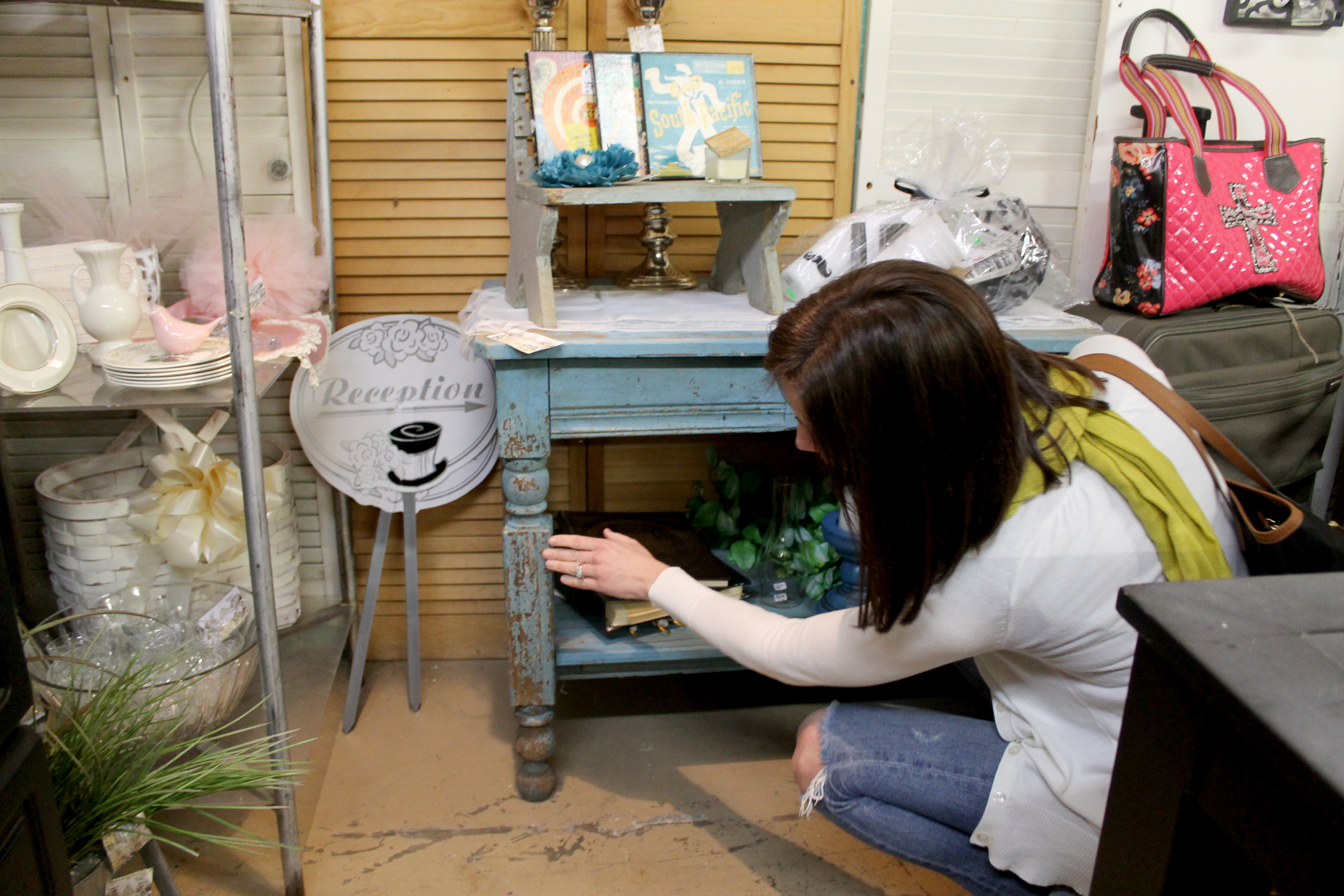 I believe it was in 2002 when in full swing with our cafe, Reggie’s, that a sweet friend opened a flea market across the street from us. Twelve of us got booths with her and we all got started by cleaning out our houses…we were all garage sale junkies already! We had a grand time and made a little money for the next two years together. Then the Bill’s Dollar Store building came up for sale and, being connected to our cafe building, my sweet hubby Reg, bought it…after I begged him to…and Gathered Treasures Flea Market was finally a reality and a dream come true! Since it was right next door with adjoining walls to the cafe, we busted through the cinder blocks, installed a door ( I always loved Cracker Barrel’s idea: eat and shop all in one bldg) and the rest is history! We have been open for ten and a half years as of today and have had a ball! We started with seven “fleas” and myself and now, all these years later, we have expanded to all three buildings and have twenty-three “fleas!” Myself, Carla Naron, and Michelle McBride run the shop each weekend and several “fleas” are in and out every week helping us out! We started our Vintage Wedding and Event Rentals in April of 2013, and had rentals a part of twenty weddings, three showers, and several photo shoots. Already this year (2014) we have booked twenty-five weddings so far! We have a great time, have made life-long friends, and will never be rich because we take what we make and buy more…it’s the thrill of the hunt that we really enjoy!!! At times it’s a lot of work, but we love every minute of it – we just don’t move quite as fast as we did ten years ago -but we have followed this dream and Jesus has provided the way!!!