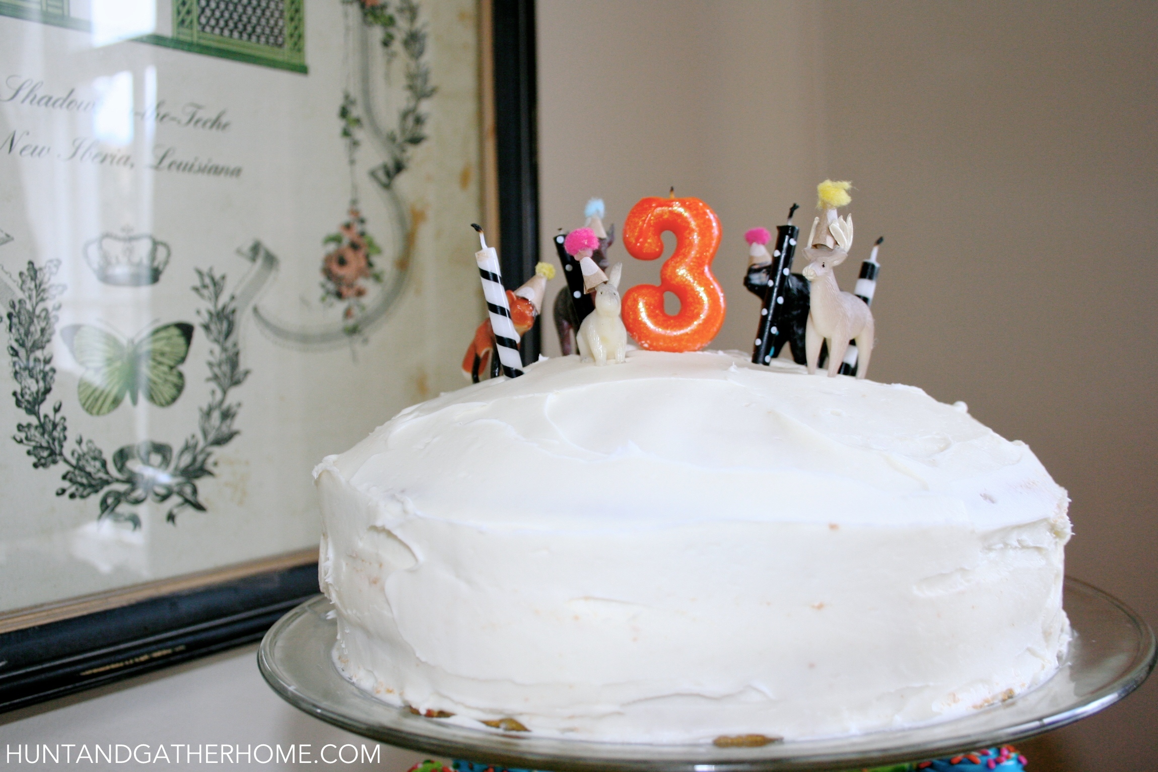 I decided to go with a homemade cake and store-bought cupcakes with the intention of topping the cake with “party animals,” i.e. plastic animals with party hats.