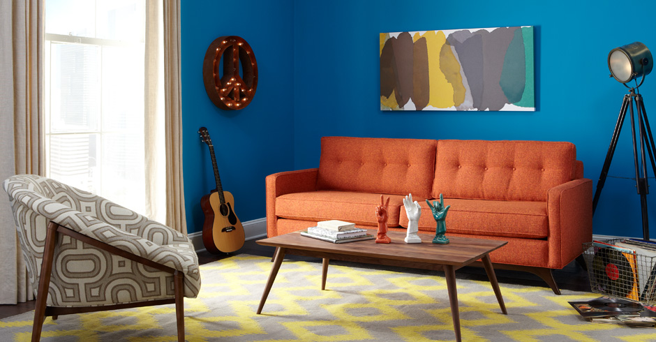 I narrowed my clients’ couch choices down to the following options (all in dark blue, remember). They took a weekend to check out each model in person, verifying both style and comfort. A couch is a worthwhile investment and its wise to choose a model that will last until it’s a true vintage!