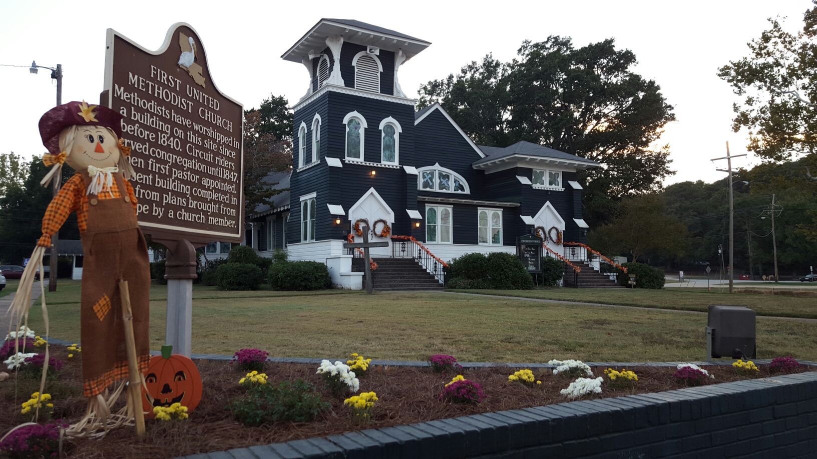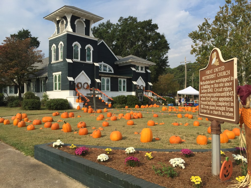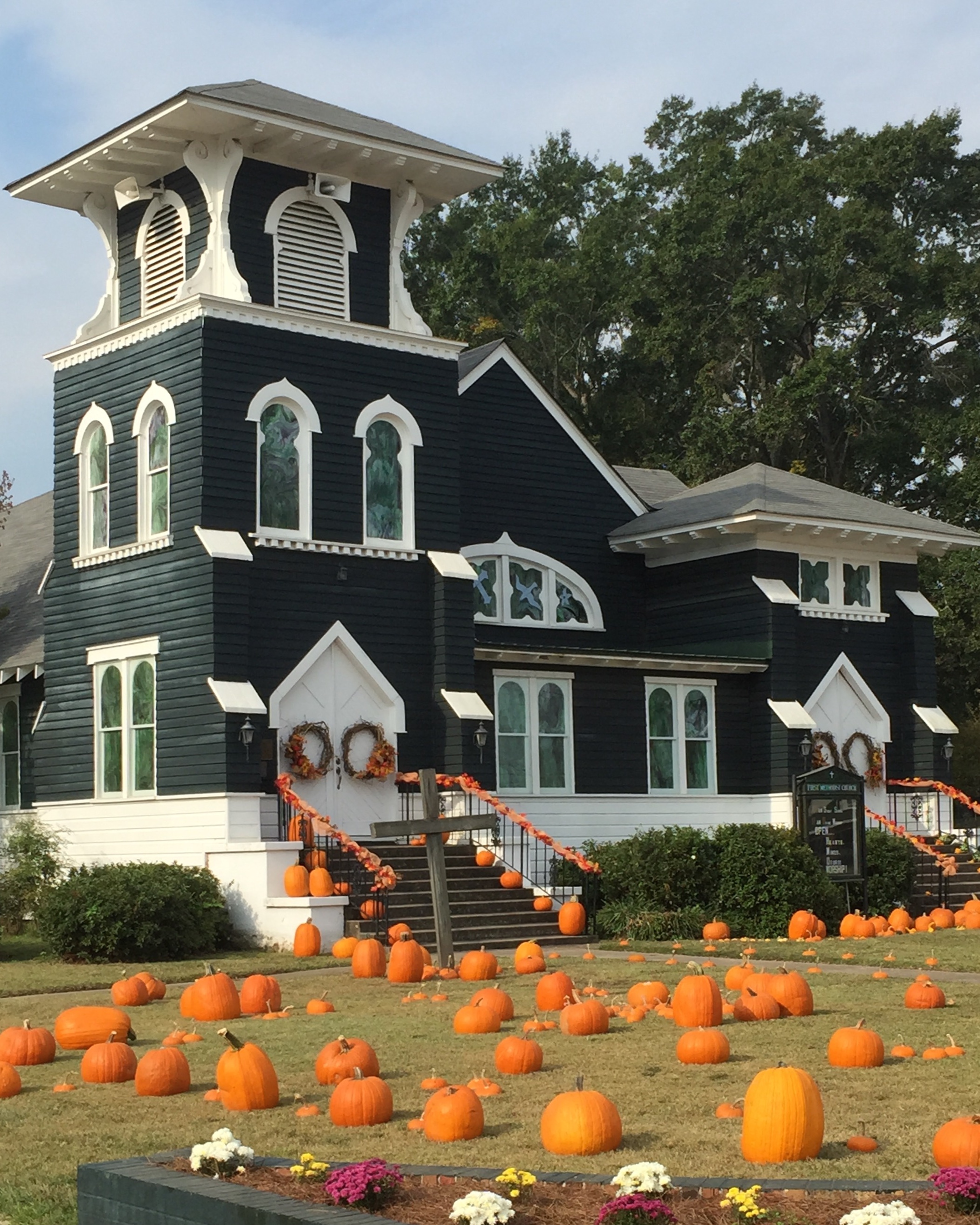 It was a special treat to catch the church decorated for fall, but it is beautiful at any time of the year. Next time you’re driving up LA 165, make a stop in Columbia. The church is on the edge of Columbia’s cute little downtown on the banks of the Ouachita River. Kudos to this congregation for taking such good care of this beautiful building.